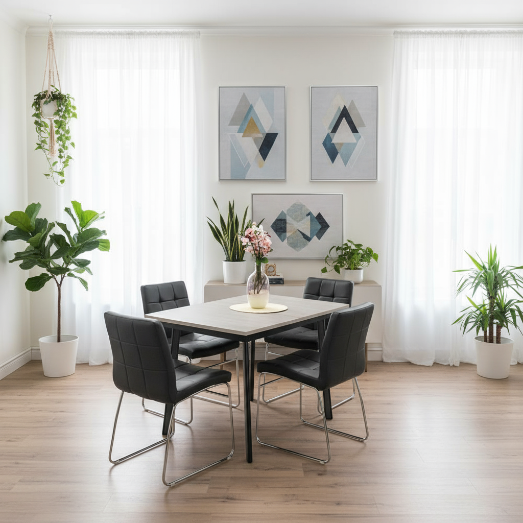 The Avery Extending Dining Table in Concrete Grey Oak Effect with Black Frame is perfect for family dining rooms and more compact spaces. The table is beautifully finished in a grey oak tone and It can be used in both open and closed positions depending on requirements.
