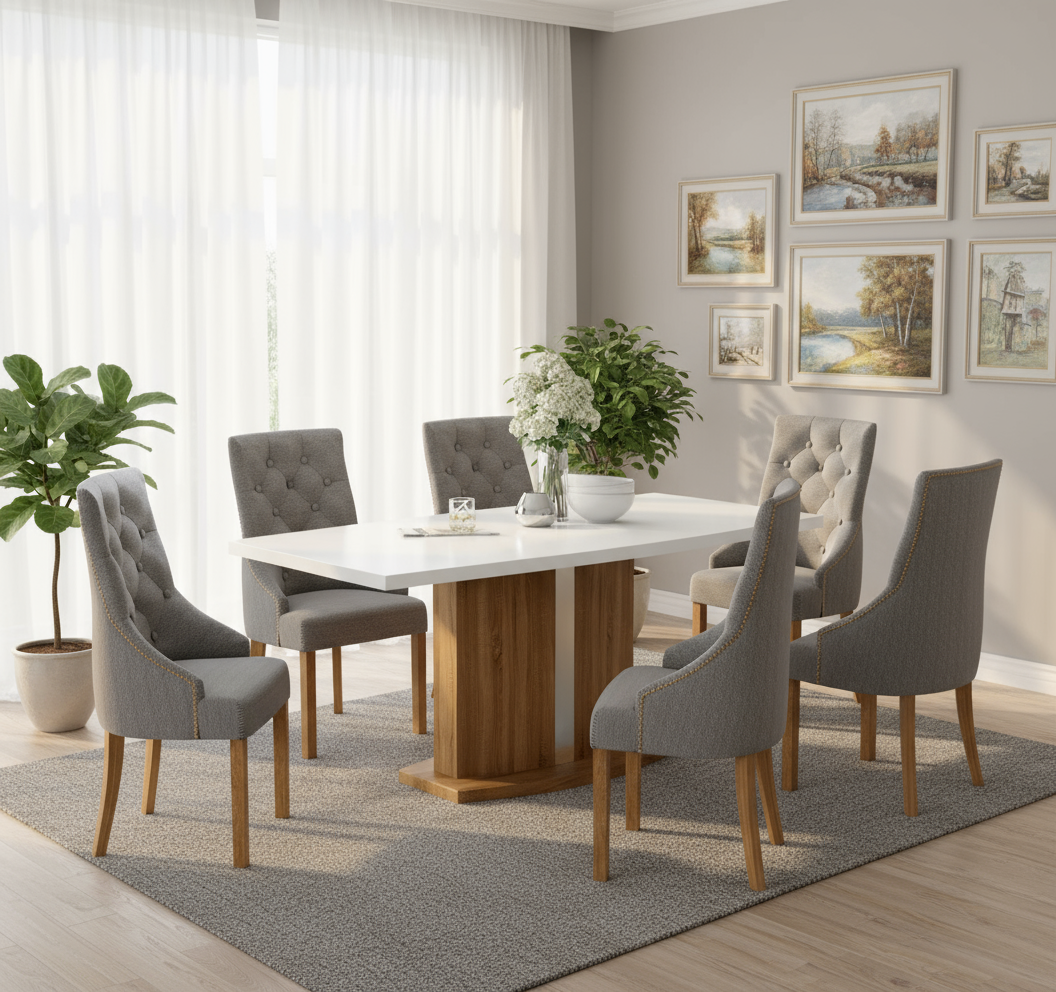 Detroit High Gloss White Top Sonoma Table & Paris Dining Chairs