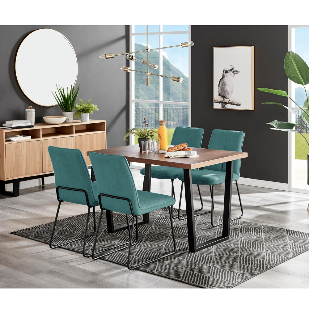 Kerry - Dark Oak Wood Effect Dining Table & 4 Halle Turquoise Fabric Dining Chairs