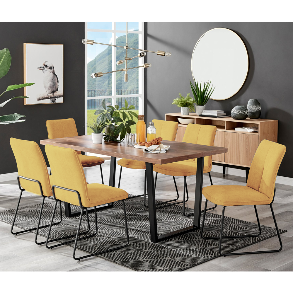 Kerry - Large Dark Oak Wood Effect Dining Table & Halle Mustard Fabric Dining Chairs