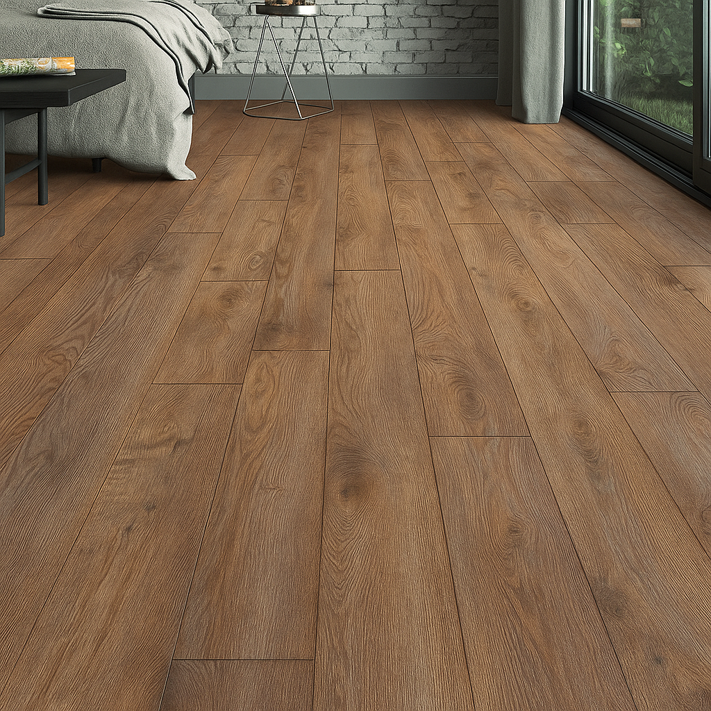 The PAMIR 12mm Laminate Flooring from Bargain Town offers a perfect balance of durability, design, and practicality. With a 12mm thickness and a heavy domestic rating, it is suitable for busy areas such as living rooms, hallways, and kitchens.